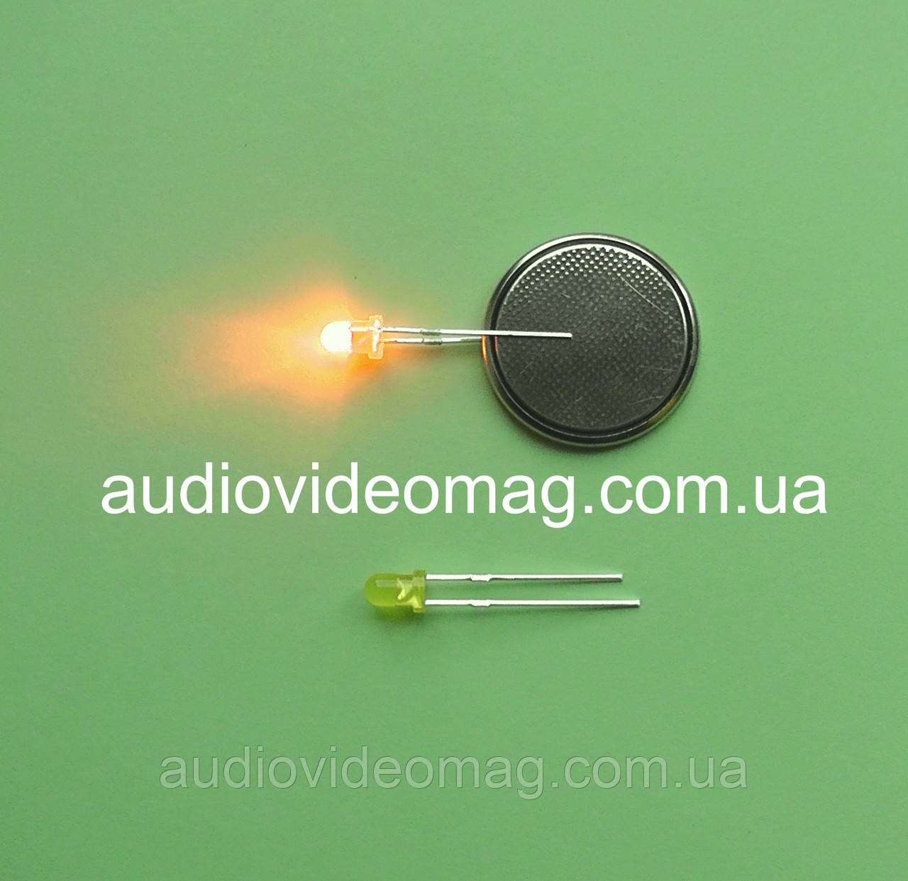 Світлодіод 3V 3 мм, матовий, колір жовтий